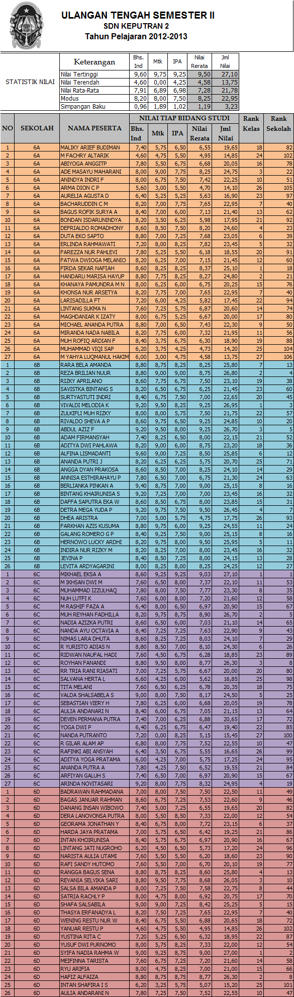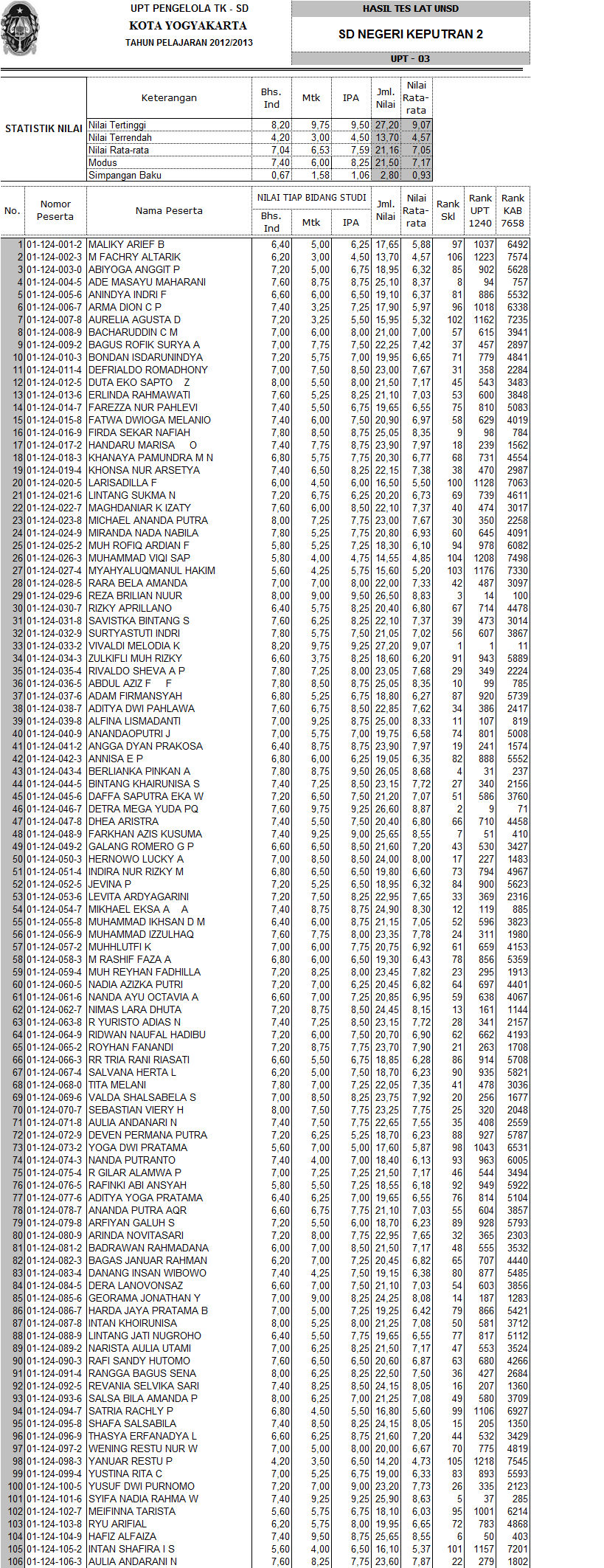 HASIL UTS SEMESTER GENAP SDN KEPUTRAN 2 YOGYAKARTA
